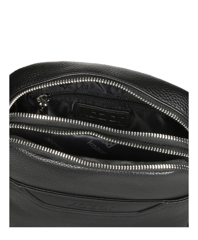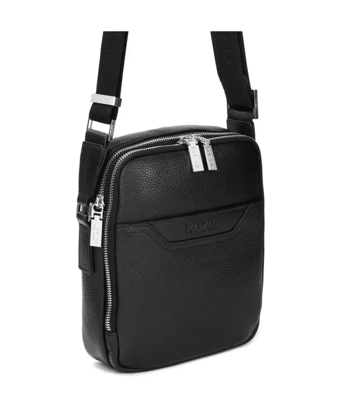 Черная мужская сумка через плечо из высококачественной натуральной кожи сочетает в себе элегантность и скромные размеры. Спереди он украшен логотипом KAZAR. Особенности мужской сумки: регулируемый ремень через плечо, 2 отделения, 1 большой внутренний карман на молнии, 1 большой внутренний карман на молнии, 1 внешний карман на передней части сумки.