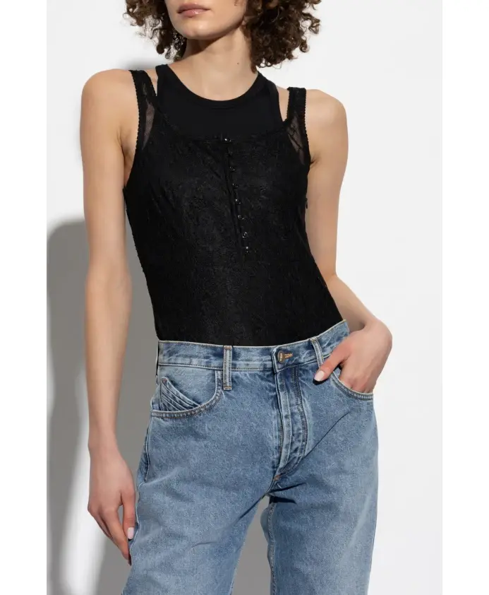 Представляем КРУЖЕВНОЕ БОДИ от известного дизайнера THE ATTICO, которое воплощает в себе женственность и элегантность. Боди, выполненное из изысканного кружева, излучает утонченное изящество и шик. Тщательно выполненное, с круглым вырезом и широкими кружевными бретелями, оно предлагает не только СТИЛЬ, но и ФУНКЦИОНАЛЬНОСТЬ благодаря застежке на пуговицы спереди. Ткань, смесь модала, кашемира и эластана, гарантирует комфорт и превосходную посадку по силуэту. Универсальность этого ЧЕРНОГО боди позволяет носить его как в повседневной жизни, так и в более официальных случаях. Его удачно сочетают с джинсами или элегантной юбкой, что делает его незаменимым элементом гардероба каждой женщины. ПОЧЕМУ СТОИТ КУПИТЬ ЭТОТ ТОВАР? * ЭЛЕГАНТНЫЙ ДИЗАЙН, подчеркнутый нежным кружевом. * УНИВЕРСАЛЬНОСТЬ в стиле – идеально подходит для любого случая. * Изготовлено из ВЫСОКОКАЧЕСТВЕННЫХ МАТЕРИАЛОВ - модала, кашемира и эластана. * Уникальный дизайн ATTICO, символизирующий независимость и смелость. Размеры модели Рост: 176 см. Грудь: 85 см. Талия: 60 см. Бедра: 89 см. На модели размер одежды: 40.