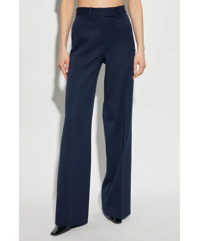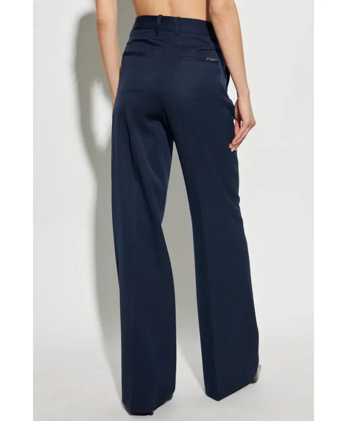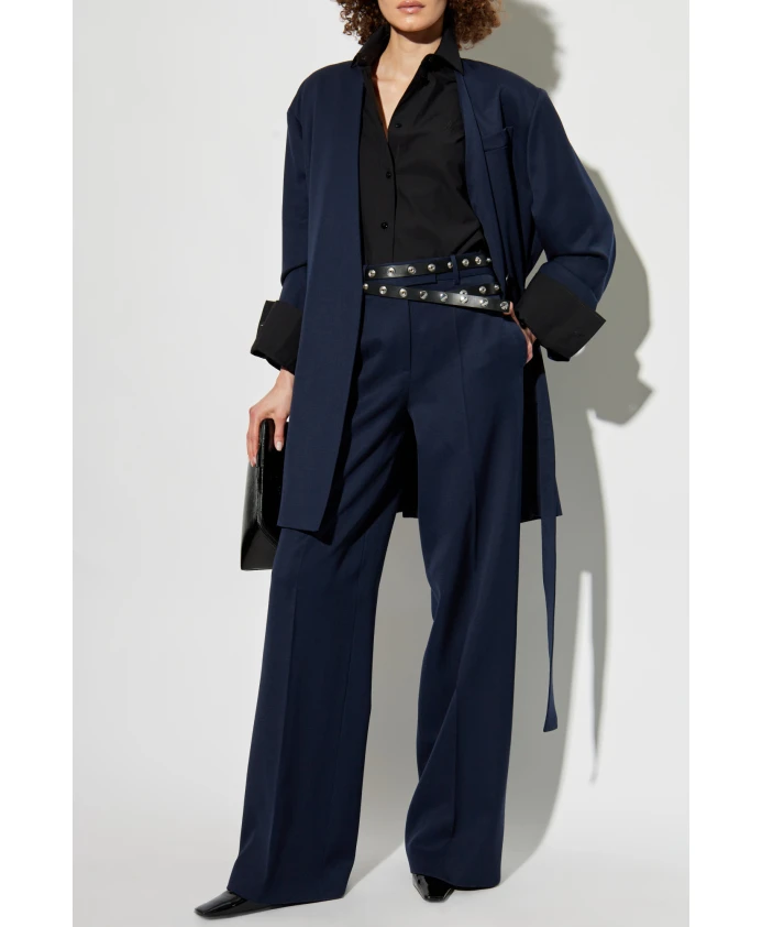 Представляем ШЕРСТЯНЫЕ БРЮКИ от известного дизайнера THE ATTICO, которые излучают формальную элегантность и неподвластную времени элегантность. Брюки из высококачественной шерсти имеют классический широкий крой, идеально облегающий силуэт благодаря стандартной талии. Темно-синий цвет делает его универсальным предметом гардероба. На спине брюк имеется тонкий металлический элемент с логотипом дизайнера, подчеркивающий их роскошный характер. Брюки застегиваются на молнию и крючок, обеспечивая комфорт и безопасность при ношении. В сочетании с темной рубашкой и широким ремнем они идеальны для официальных мероприятий, как в офисе, так и на элегантных выходах в свет. ПОЧЕМУ СТОИТ КУПИТЬ ЭТОТ ТОВАР? * Изготовлено из высококачественной шерсти, что гарантирует комфорт и элегантность. * Универсальный темно-синий цвет, легко сочетается с другими предметами гардероба. * Тонкие детали придают роскошный характер. * Идеально подходит для официальных мероприятий и элегантных прогулок. Размеры модели. Рост: 176 см. Грудь: 85 см. Талия: 60 см. Бедра: 89 см. На модели размер одежды: 40.