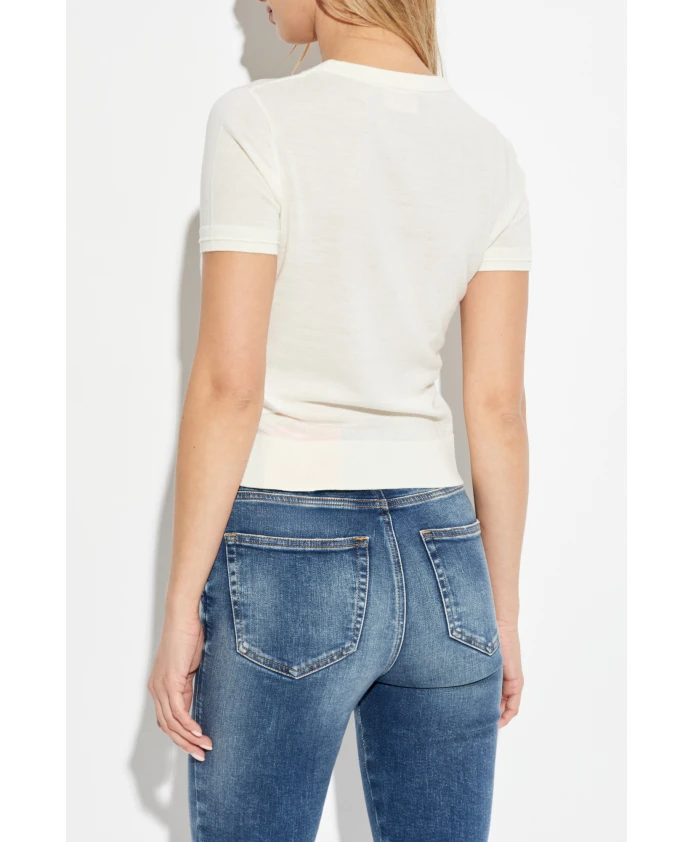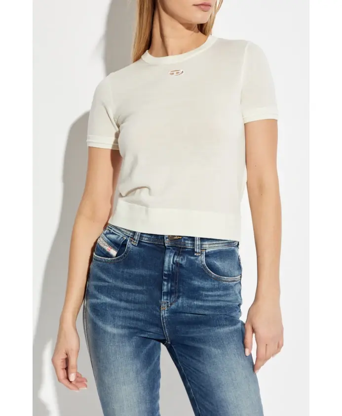 Представляем необыкновенную модель TOP M-ALINE от Diesel, которая гармонично сочетает в себе современный стиль и вневременную элегантность. Изготовленная из высококачественной ШЕРСТИ, она обеспечивает непревзойденный комфорт и гибкость. Облегающий силуэт, короткие рукава и классический круглый вырез делают его идеальным выбором для любого случая. На передней части лифа, чуть ниже выреза, фирменный вырез с вышивкой, изображающей букву «D» в овальной рамке, служащую тонким акцентом бренда Diesel. Кремовый оттенок придает ему универсальность, позволяя легко сочетать его с другими вещами, например, с джинсами, и подчеркивая его повседневный, но стильный характер. ПОЧЕМУ СТОИТ КУПИТЬ ЭТОТ ТОВАР? * Изготовлен из эксклюзивной шерсти для комфорта и долговечности. * Стильная вышивка с логотипом бренда Diesel. * Универсальный кремовый цвет, который подойдет ко многим нарядам. * Идеальное сочетание элегантности и повседневного стиля. Размеры модели Рост: 177 см. Грудь: 83 см. Талия: 61 см. Бедра: 89 см. На модели размер одежды: S.