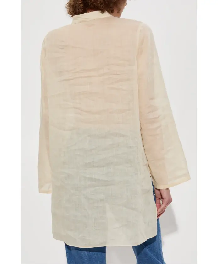 Презентация топов с длинными рукавами от известного бренда TORY BURCH, известного своим роскошным и неподвластным времени дизайном. КРЕМОВАЯ БЛУЗКА прекрасно сочетает в себе элегантность и легкость, что делает ее идеальным выбором для различных случаев. СВОБОДНАЯ ПОСАДКА и длина до бедра добавляют стиля и комфорта. Блузка, выполненная из легкого полупрозрачного материала РАМИ, излучает нежность и утонченность. Его уникальный характер подчеркивается ДЕКОРАТИВНОЙ ПЛАНКОЙ НА ПУГОВИЦАХ с вертикальными складками, идущими от круглого выреза с небольшим разрезом. ДЛИННЫЕ, СЛЕГКА РАСКРЕШЕННЫЕ РУКАВА гармонируют со свободным кроем и придают нотку современной элегантности. ПОЧЕМУ СТОИТ КУПИТЬ ЭТОТ ТОВАР? * Разработан люксовым брендом Tory Burch, известным своими вечными моделями. * Изготовлен из нежного и элегантного рами. * Повседневный крой, идеально подходящий для разных случаев. * Уникальные детали, придающие современный характер. Размеры модели. Рост: 177 см. Грудь: 83 см. Талия: 61 см. Бедра: 89 см. Размер на модели: S.