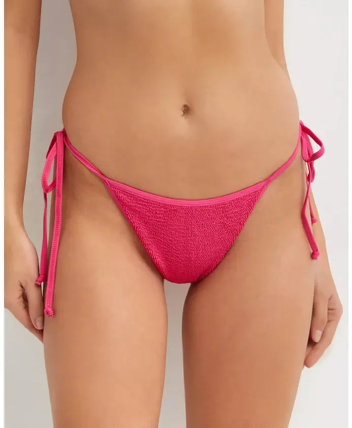 Розовые плавки бикини Bond-Eye Anisha с завязками по бокам, структурированным дизайном и средней степенью защиты. Изготовлен из быстросохнущей экологически чистой смесовой ткани. Выделитесь с этим уникальным изделием Bond-Eye Australia.