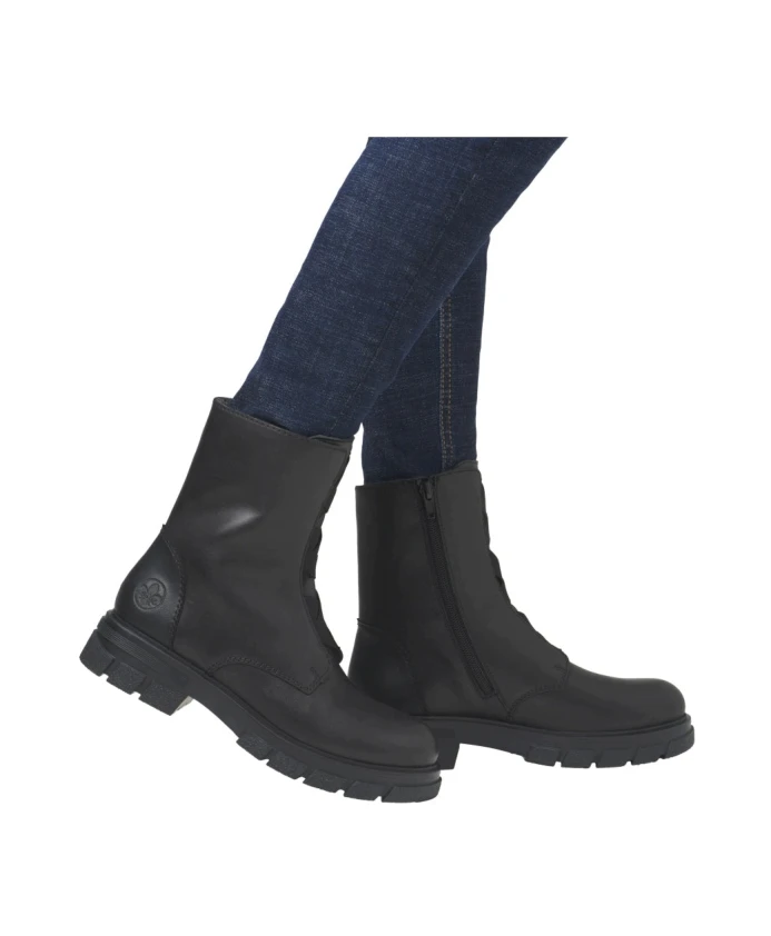Подчеркните свой стиль с помощью этих женских ботильонов Rieker. Изготовлены из черной кожи с замшевой подкладкой и резиновой подошвой. Код продукта: Z9179-00.
