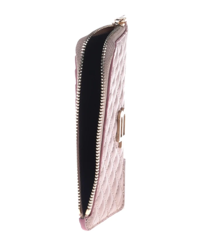 Этот золотой кошелек добавит вашему образу сияния. Застежка-молния обеспечивает просторные отделения для карт, монет и купюр, обернутых элегантным стеганым узором. Последний штрих? Логотип нанесен спереди. Модель произведена в Италии.