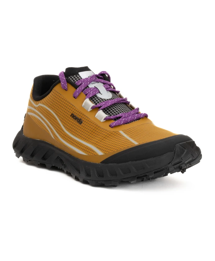 Откройте для себя самые отзывчивые кроссовки для трейлового бега в мире, созданные для самых сложных условий местности. Эти кроссовки, изготовленные из материала Dyneema на органической основе, обеспечивают превосходную чувствительность и контакт с землей. Низкий профиль для улучшения ощущения на бездорожье, надежная подкладка в области пятки и межподошва в форме пирамиды для устойчивости в технических условиях. Износостойкие, с ромбовидными шнурками из Dyneema и полиэстера, светоотражающими панелями высокой видимости и сверхлегким внутренним ремешком для непревзойденного комфорта и стабильности. Специальная стелька из эТПУ для максимальной амортизации и отзывчивости. Амортизирующая межподошва Norda x Vibram SLE и эксклюзивная подошва Norda x Vibram с материалами Litebase и Megagrip. Резиновые шипы толщиной 5 мм для оптимального сцепления.