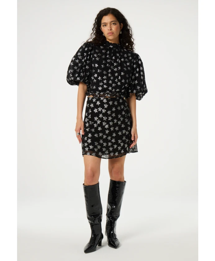 Эта черная женская мини-юбка с принтом по всей поверхности с серебряными звездами идеально подходит для торжественных случаев. Изготовлен из роскошной смеси. Сочетайте его с подходящим топом Dolli, чтобы создать гармоничный образ.