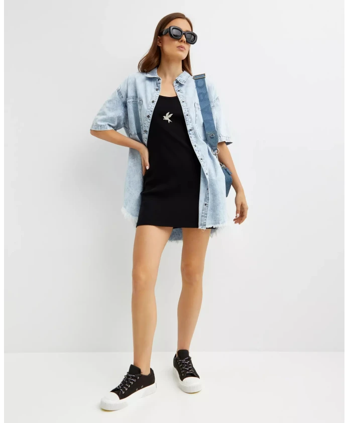 Оставайтесь шикарной и стильной в этом черном платье One Teaspoon. Приталенный силуэт, контрастный логотип бренда спереди, круглый вырез, модель без рукавов и мини-длина до середины бедра. Изготовлен из 100% органического хлопка.