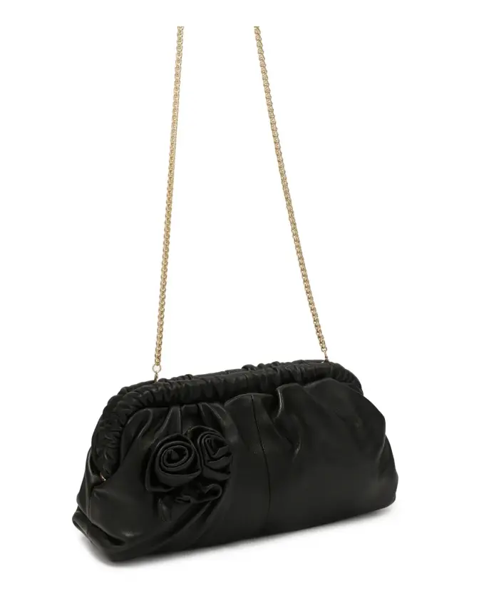 Черный клатч из натуральной кожи – это квинтэссенция элегантности и современного стиля. Он закрывается металлической рамкой, которая обеспечивает сохранность хранящихся вещей. Кроме того, она оснащена съемной цепочкой, что позволяет носить ее в руке как сумку через плечо, так и как элегантный клатч. Главным украшением этой уникальной сумки являются привлекательные кожаные 3D-розы, которые подчеркивают ее яркий и неповторимый характер. Клатч в форме облака сочетает в себе утонченность и оригинальность, что делает его идеальным дополнением вечернего и коктейльного наряда. Подробности о товаре: Сумка имеет 1 отделение, закрытое металлическим каркасом. Внутри 1 карман на молнии. Сумочка оснащена съемной нерегулируемой цепочкой.