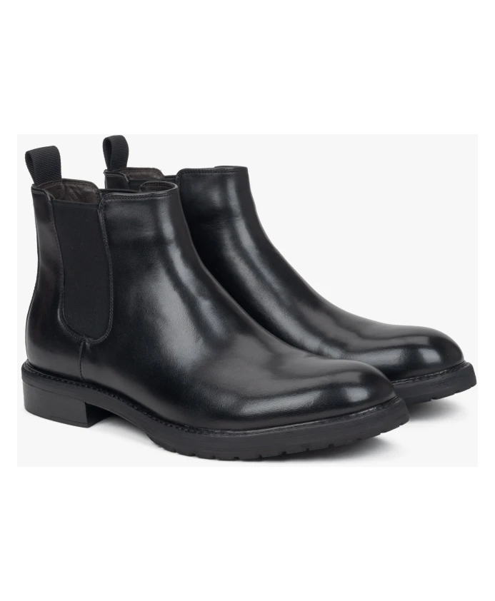 Эти черные мужские ботинки челси изготовлены из высококачественной натуральной кожи, которая отличается долговечностью и стильным внешним видом. Благодаря эластичным боковым вставкам для удобной посадки они созданы для повседневных и полуофициальных мероприятий. Гладкая кожаная поверхность подчеркивает изысканный внешний вид, а прочная подошва обеспечивает сцепление и устойчивость. Кроме того, эти ботинки имеют фланелевую подкладку, которая обеспечивает дополнительное тепло и комфорт, что делает их идеальными для осеннего и зимнего сезонов. Их вневременной дизайн и практичность делают их незаменимыми предметами гардероба. Длина стельки: 39 – 25 см | 40–25,5 см | 41–26 см | 42–27 см | 43–27,5 см | 44–28,5 см | 49 – 29 см.