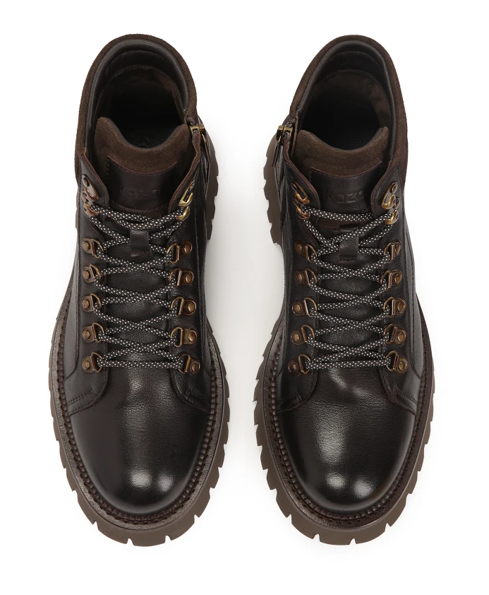 Коричневые сапоги из натуральной кожи — элегантная и прочная обувь, идеальная для прохладных дней. Замшевый воротник придает изделию утонченную текстуру и изысканный вид. Металлические ручки на шнуровке цвета старого золота добавляют винтажный элемент и подчеркивают стильный характер кроссовок. Подошва Trefoil обеспечивает превосходное сцепление и устойчивость, придавая обуви дополнительную долговечность и функциональность. Представленные кроссовки сочетают в себе классику с современными акцентами и прекрасно сочетаются с самыми разными стилями: от повседневного до элегантного. Мягкая подкладка из овчины гарантирует высокий комфорт, а подкладка из тканевого меха создает ощущение тепла в холодные дни.