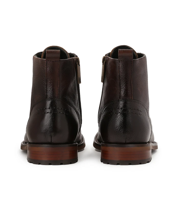 Коричневые мужские ботинки из качественной натуральной кожи отличаются элегантностью и долговечностью. Их тщательное мастерство подчеркивает престижный внешний вид, который идеально сочетается как с формальным, так и с повседневным стилем. Верх обуви оснащен молнией и шнуровкой, обеспечивающими удобную и плотную посадку на ноге. На задней части ботинка имеется практичная петелька, которая облегчает надевание и снятие ботинок. Каблук выполнен из дерева, что придает обуви классический и несколько деревенский вид и подчеркивает ее элегантный вид. Подкладка из мягкой полуанилиновой овчины гарантирует высокий комфорт, а тканевая меховая подкладка создает ощущение тепла в холодные дни.