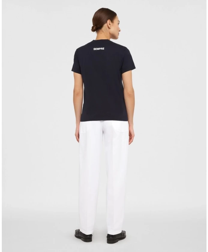 Обновите свой повседневный гардероб с помощью этой хлопковой трикотажной футболки Aspesi MAI E SEMPER. Этот топ из мягкой и дышащей ткани украшен легендарной надписью MAI E SEMPER спереди. Модель стандартного кроя, с короткими рукавами и круглым вырезом украшена флажком с логотипом ASPESI сбоку. Рост модели 176 см, на ней размер S. Код товара: S3_Z_Z112_M144__01098. Состав: 100% хлопок. Рекомендации по уходу: Сухая чистка перхлорэтиленом, монофтортрихлорэтаном и углеводородами. Избегайте обычных процессов, таких как трихлорэтилен или триелин. Машинная стирка при 30°C. Гладить при температуре не более 110°C. Не сушить при высокой температуре. Не отбеливать.