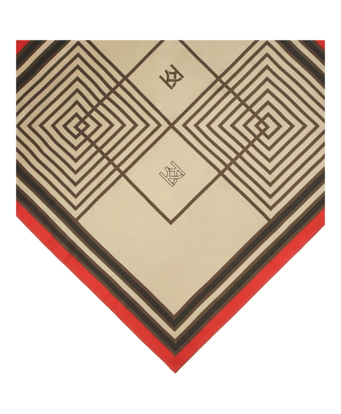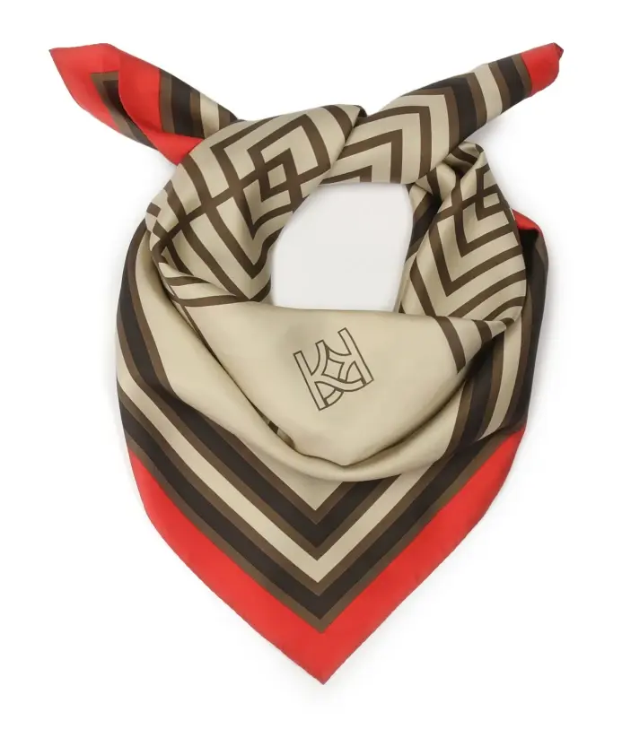 Роскошный бежево-коричневый шарф с геометрическим узором – элегантный аксессуар, излучающий изысканность и класс. Изготовленный из шелка высочайшего качества, он чрезвычайно нежен и приятен на ощупь, что гарантирует высокий уровень комфорта. Цвет ткани включает нежные оттенки бежевого и коричневого, которые гармонично сочетаются друг с другом и создают гармоничный и элегантный образ. Геометрический узор придает современный вид, привлекает внимание и подчеркивает уникальный стиль. Благодаря своим размерам шарф очень универсален: его можно носить по-разному: как дополнение к элегантному наряду или как тонкий акцент к более повседневному наряду.