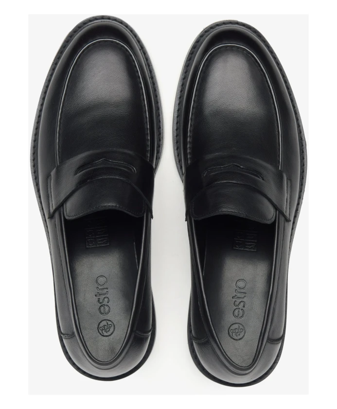 Черные пенни-лоферы из натуральной кожи – это неподвластная времени элегантность и долговечность. Созданные для круглогодичного ношения, они имеют гладкий кожаный верх, кожаную подкладку для максимального комфорта и плоский каблук для непринужденного стиля и поддержки в течение всего дня. Конструкция без застежки позволяет легко надевать, а классический пенни-ремешок придает изделию изысканный вид. Эти лоферы идеально подходят как для формального, так и для повседневного образа и являются универсальным дополнением к любому гардеробу. Длина стельки: 39 – 25 см | 40–25,5 см | 41–26 см | 42–27 см | 43–27,5 см | 44–28,5 см | 45–29 см