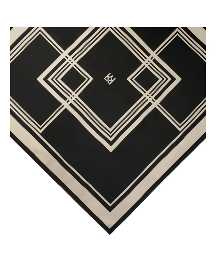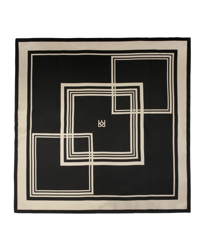 Шелковый шарф поражает своей элегантностью и изысканным дизайном. Черная основа образует идеальный фон для бежевого узора из эффектно расположенных квадратов разных размеров. Благодаря такому принту шарф выглядит одновременно классически и современно. Шелк очень мягкий и нежный на ощупь, что делает его удобным в носке. Материал также имеет легкий блеск, который придает шарфу роскошный вид. Края шарфа тщательно обработаны, что свидетельствует о высоком качестве изготовления. Шарф настолько универсален, что его можно носить по-разному – как украшение на шею, повязку для волос или элегантный аксессуар для сумочки.