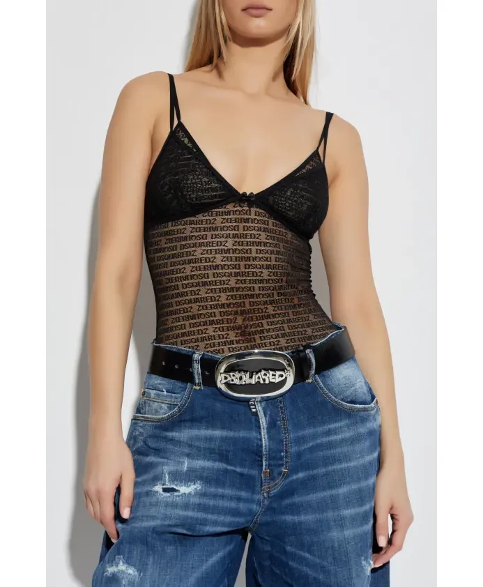 Кружевной топ на бретельках Dsquared2, черный