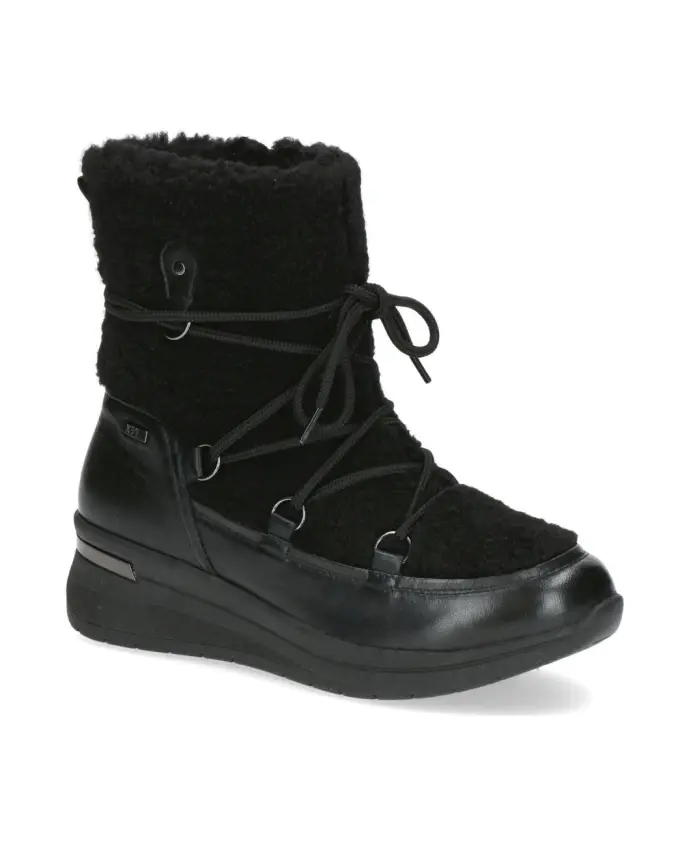 Подчеркните свой зимний стиль с помощью этих черных женских ботильонов Caprice. Эти ботильоны, изготовленные из сочетания кожи и текстиля, имеют подкладку и подошву из синтетической ткани. Код товара: 9-26222-43-019.