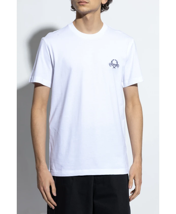 Представляем ФУТБОЛКУ С ВЫШИВАННЫМ ЛОГОТИПОМ от Moschino, которая сочетает в себе классическую элегантность с нотками остроты, характерными для этого престижного бренда. Рубашка изготовлена из высококачественного хлопка, что гарантирует не только комфорт, но и долговечность и эстетику на высшем уровне. Эта исключительная футболка впечатляет своим простым, но изысканным дизайном. Классический крой с короткими рукавами и круглым вырезом идеально дополняет белый тон и подчеркивает тонкое очарование всего образа. Вышитый логотип на груди - черный, декоративный.