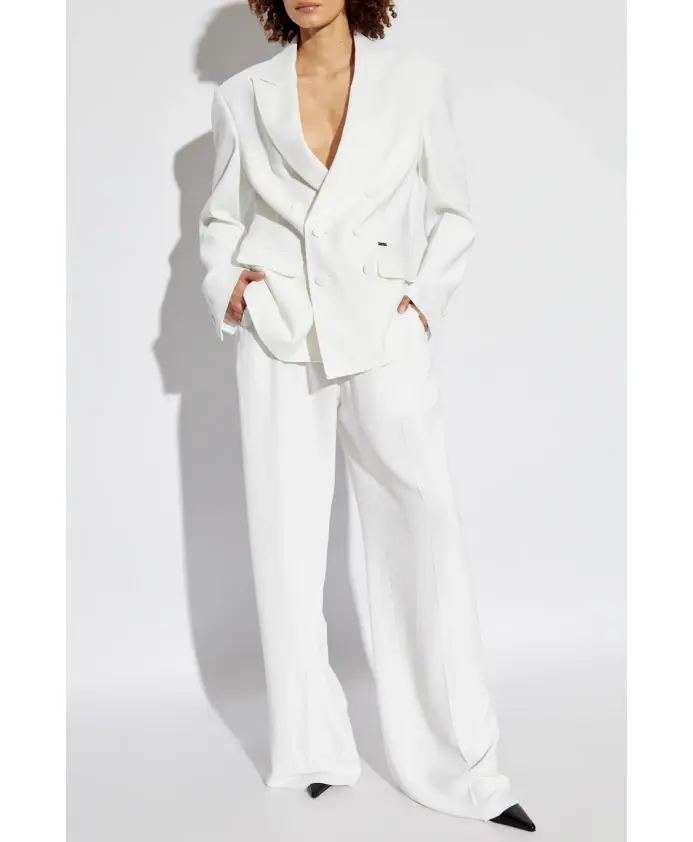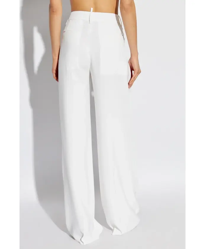 Представляем ШИРОКИЕ БРЮКИ ПЛИССИРОВАННЫЕ БРЮКИ от известного бренда Dsquared2, который формирует мир моды с 1995 года под руководством братьев Дэна и Дина Кейтен. Эти элегантные белые брюки — воплощение роскоши и классического стиля, идеально подходящие для официальных мероприятий. Изготовленные из гладкой, слегка мерцающей ткани с сочетанием вискозы и эластана, они обеспечивают комфорт и безупречный внешний вид. Плиссированные для формального вида, они подчеркивают свою уникальность. Застежка на молнию и пуговицу спереди с тонкой металлической бляшкой.