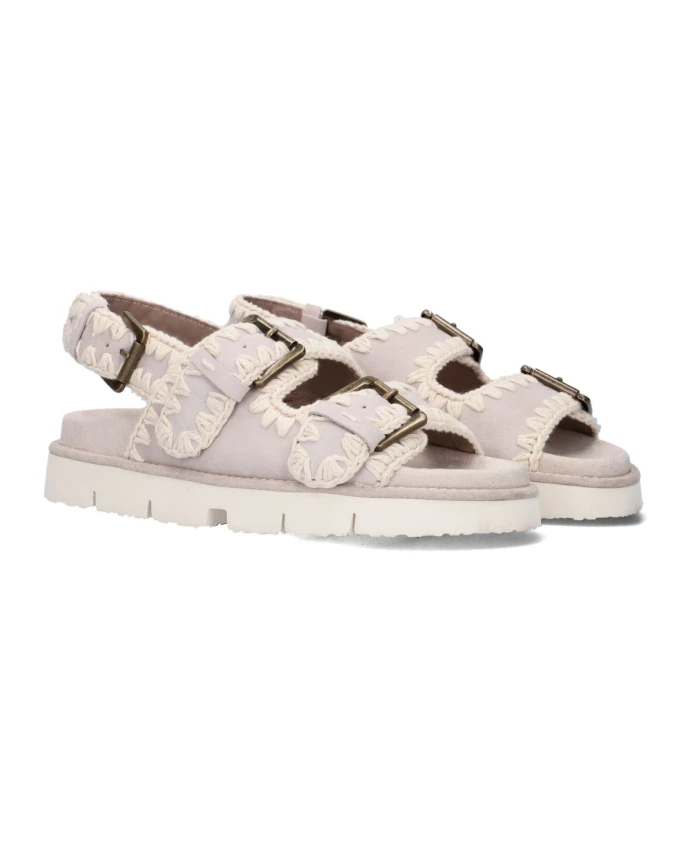 Будьте стильными в этих смелых и женственных сандалиях на плоской подошве от MOU. Эти сандалии, выполненные из светло-серо-коричневой замши с массивной бежевой текстильной отделкой, оснащены тремя пряжками для индивидуальной подгонки. Кожаная подкладка и мягкая текстильная стелька обеспечивают комфорт, а резиновая подошва с глубокими бороздками и логотипами брендов обеспечивает сцепление. Высота каблука вместе со стелькой составляет 5 сантиметров. Сочетайте их с джинсами для повседневного образа или с платьем макси для более элегантного образа!