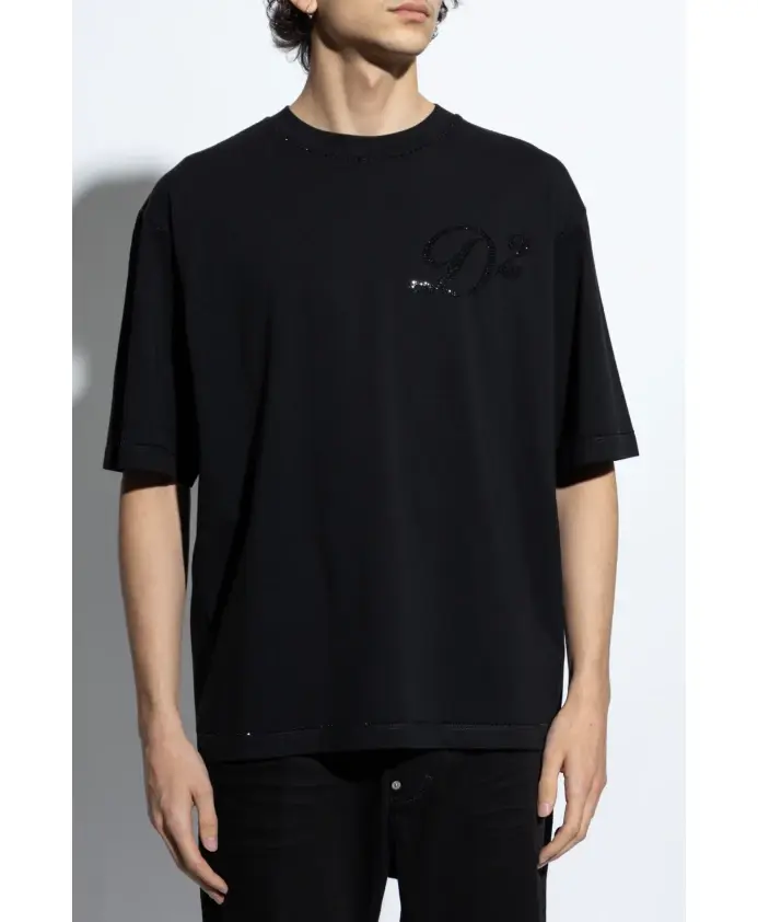 Представляем ФУТБОЛКУ С МЕРЦАЮЩИМИ КРИСТАЛЛАМИ от известного бренда Dsquared2, олицетворяющую элегантность и роскошь. Изготовленная из высококачественного хлопка, она не только обеспечивает исключительный комфорт, но и долговечность, на которую можно положиться. Классический крой с короткими рукавами и круглым вырезом делает его универсальным предметом одежды. Черный цвет добавляет универсальности и элегантности, что делает его идеальным выбором для любого случая. В центре левой груди есть сверкающий.