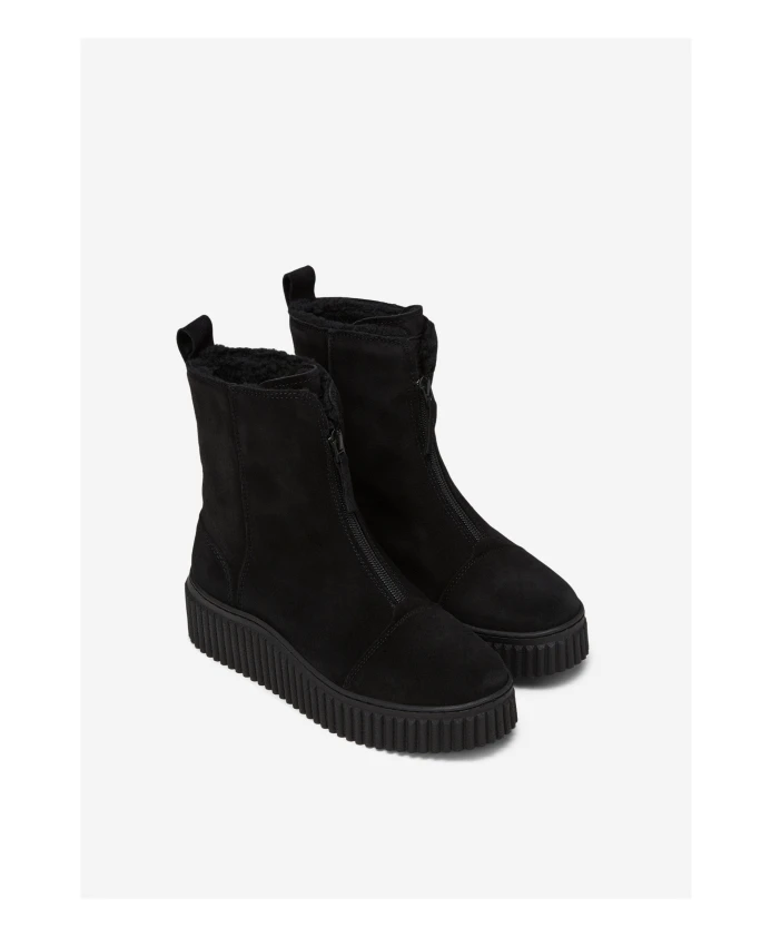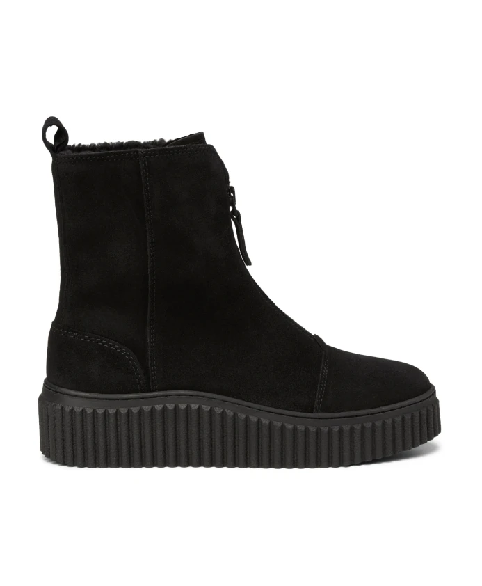 Крутое обновление модной обуви: повседневные ботинки на платформе оснащены современной передней молнией и подкладочным язычком, а также прочно профилированной подошвой на платформе из сверхлегкого материала TR. Изготовленные из элегантной замши, они выглядят очень качественно. Внутри пушистая теплая подкладка из полиэстера и стелька из микрофибры с пеной с эффектом памяти обеспечивают высокий уровень комфорта. Кожаная петля сзади облегчает надевание. Сделано в Португалии. 100% кожа (телячья кожа) xx