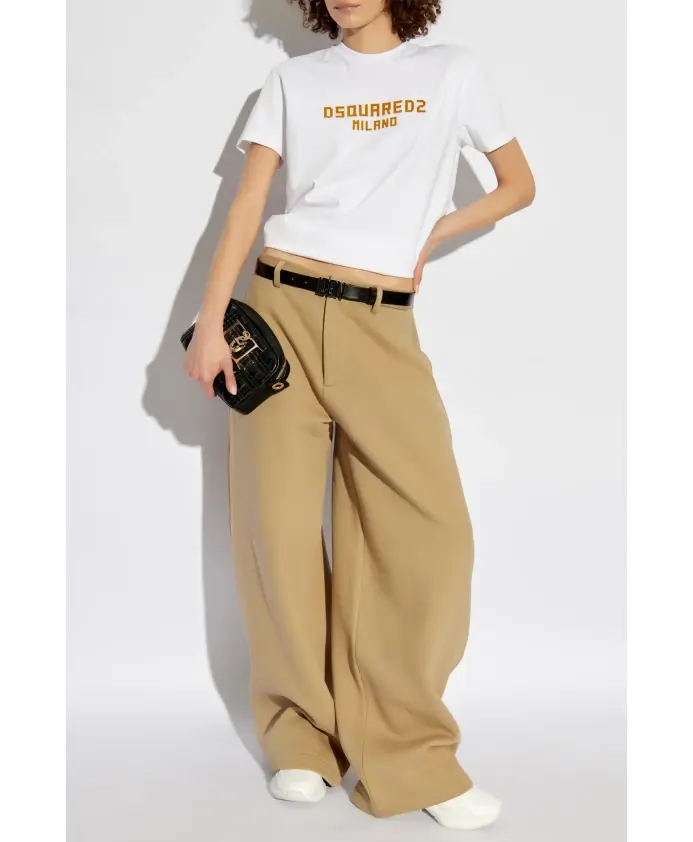 Представляем исключительные ШИРОКИЕ БРЮКИ от известного бренда Dsquared2, сочетающие в себе исключительную элегантность и повседневный комфорт. Изготовленные из мягкого трикотажа, они станут идеальным выбором для тех, кто ценит свободу и стиль в одном. Классический БЕЖЕВЫЙ ЦВЕТ делает их отличным дополнением к любому гардеробу, а широкие штанины подчеркивают повседневный характер. Брюки разработаны с учетом функциональности и оснащены петлями для ремня и практичными карманами. Деталь черного цвета