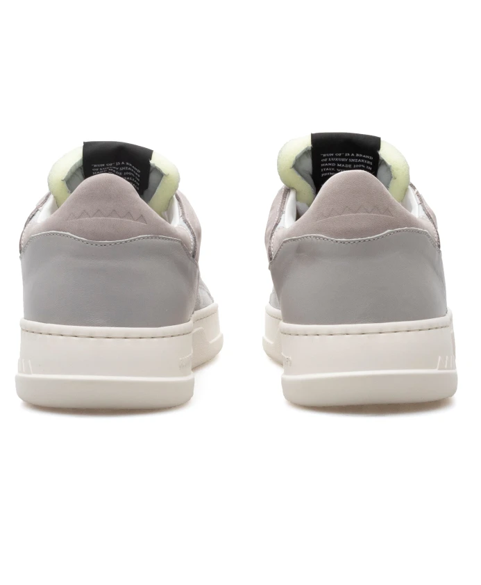 Серые кроссовки из кожи и нейлона. Хлопковые шнурки. Подошва из белой резины. Сделано в Италии. размерный пробег; регулярная посадка