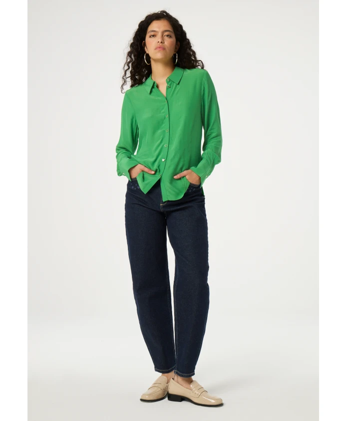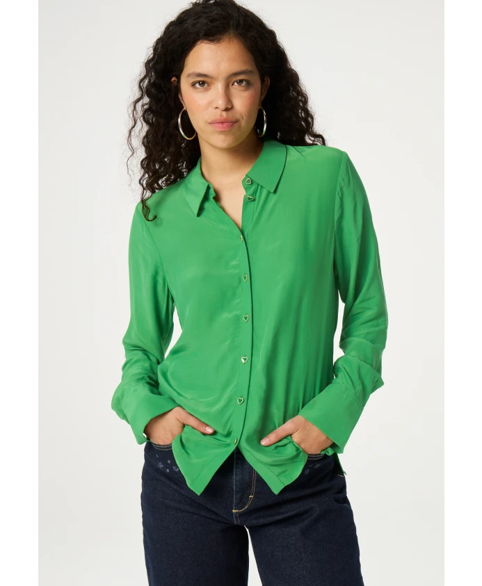 Эта зеленая женская блузка имеет женственные пуговицы-сердечки, длинные рукава, классический воротник и классический крой. Изготовленный из вискозы, это один из наших наиболее экологичных стилей. Сочетайте их с одними из наших джинсов, чтобы создать непринужденный шикарный повседневный образ.