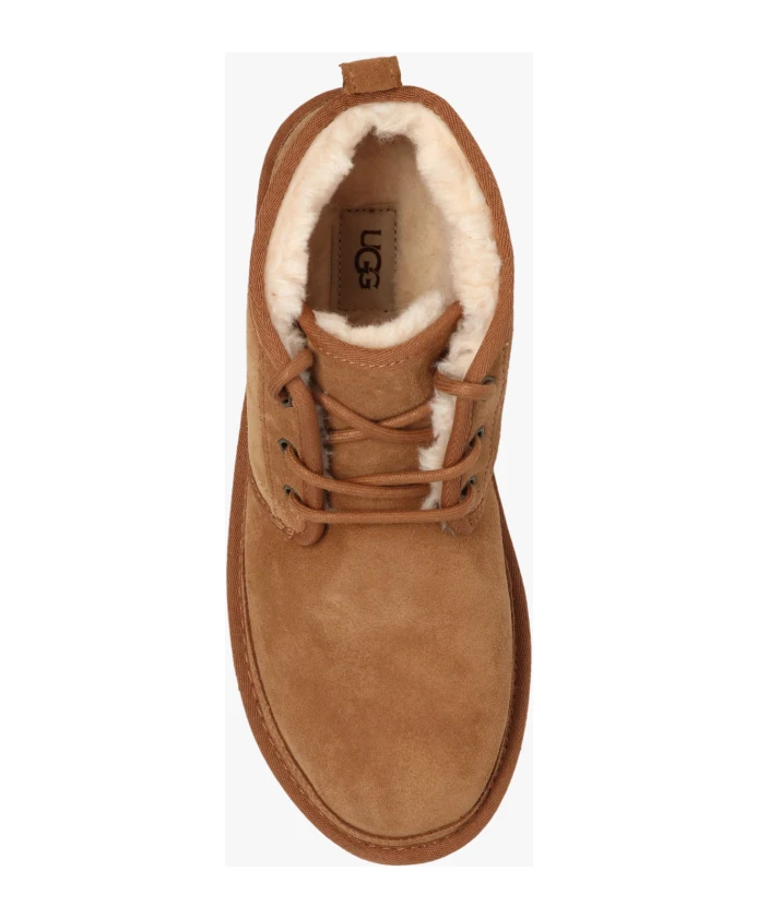 Создайте стильный образ с этими коричневыми женскими ботильонами UGG 'Neumel' на шнуровке. Верх из замши, подкладка из переработанной шерсти UGGplush, прочная подошва, закругленный носок, термотисненый логотип, язычок на пятке, металлические люверсы и хлопковые шнурки. Длина стержня: 10 см.