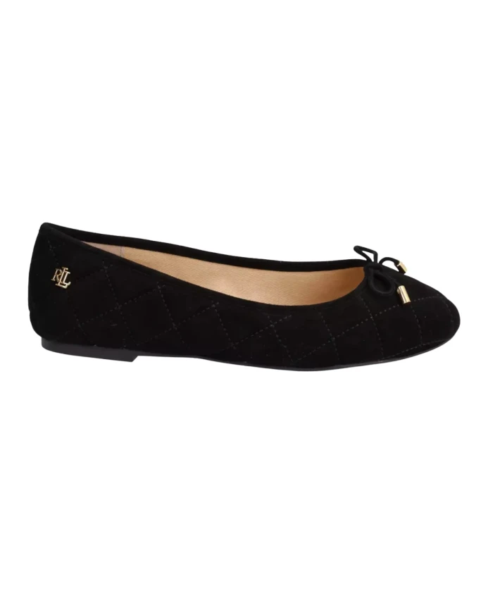 Балетки Lauren Ralph Lauren из высококачественной замши с классическим черным круглым носком удобная стелька с видимым логотипом бренда модель без шнуровки декоративный бантик сбоку видимый золотой металлический логотип бренда классика, которая прослужит много сезонов высота каблука: 1,5 см