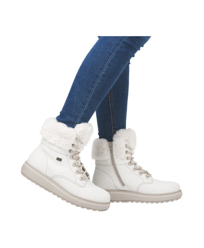 Оставайтесь стильными и теплыми этой зимой с этими белыми женскими ботильонами Remonte. Эти ботинки с кожаным верхом и шерстяной подкладкой идеально подходят для взрослых женщин. Код товара: D0U70-80.