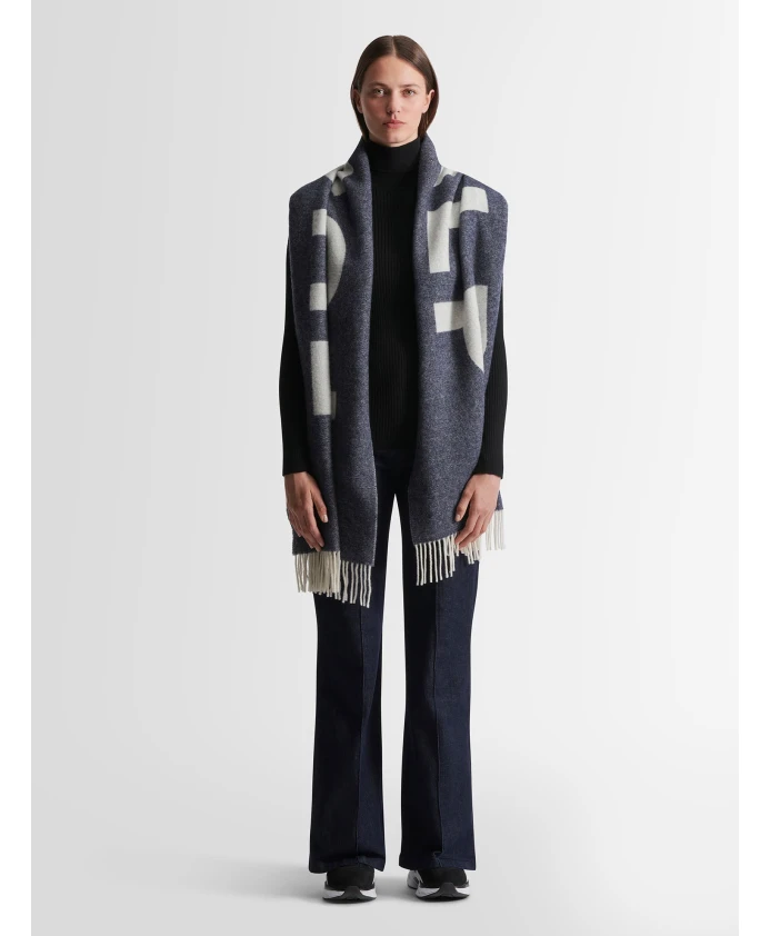Шарф оверсайз украшен контрастными деталями. Оно выполнено из шерстяного жаккарда с надписью XL Fusalp спереди. Этот аксессуар с бахромой доступен в формате XXL, его можно носить на плечах или на шее.