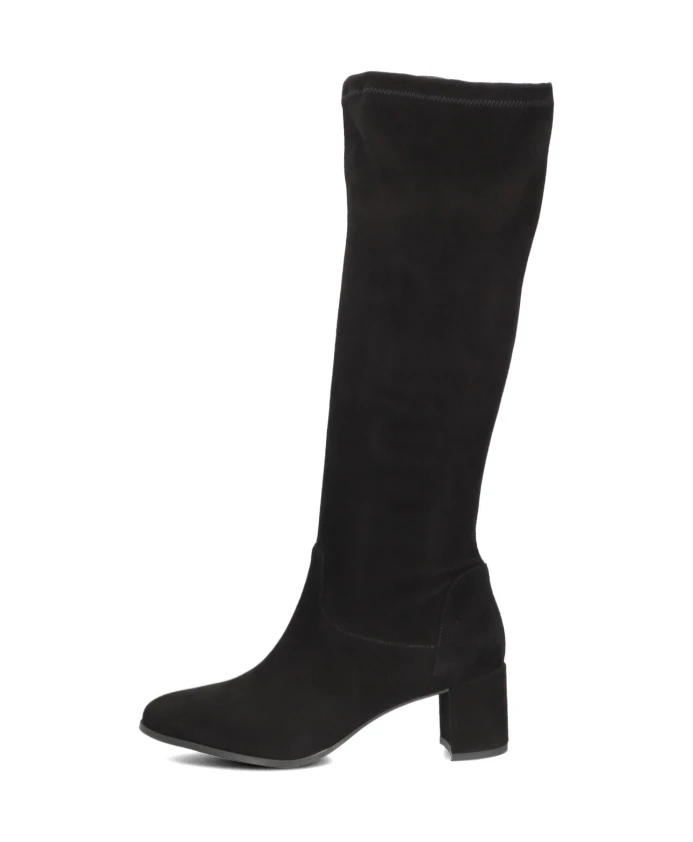 Откройте для себя элегантное очарование черных высоких сапог 8581 от NOTRE-V. Идеально подходит для женщин, которые хотят сочетать стиль и комфорт. Эти ботинки идеальны для любого случая! Высококачественная замша обеспечивает роскошный вид и долговечность. Верх очень гибкий и имеет половинную молнию для легкого надевания и снятия. Тонкий блочный каблук также покрыт замшей, создавая завершенный образ. Легко сочетайте их со стильным тренчем и будьте сияющими!