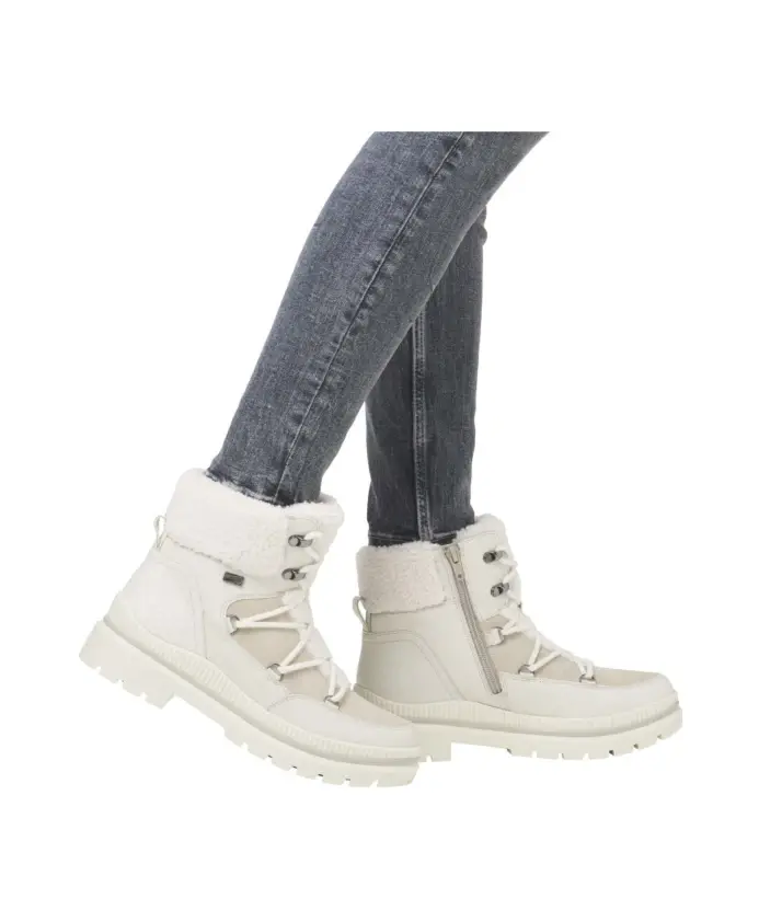 Подчеркните свой стиль с помощью этих белых женских ботильонов Remonte. Эти сапоги на шнуровке из кожи с уютной шерстяной подкладкой идеально подойдут взрослым женщинам. Код продукта: D0C80-80.