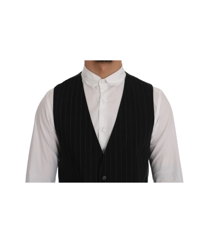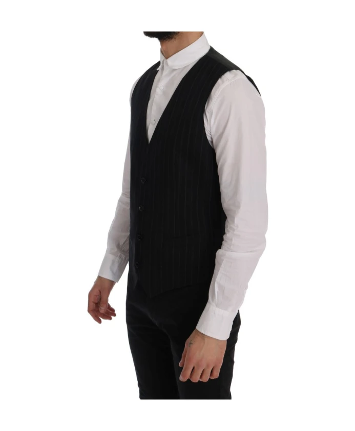 Подчеркните свой стиль с помощью этого мужского жилета Dolce & Gabbana. Этот жилет с элегантным однобортным дизайном, классическими черными полосками и застежкой на пуговицы является воплощением изысканности. Изготовленная из 80% хлопка и 20% вискозы, она обеспечивает удобную посадку и регулируемый ремень сзади. Этот жилет, изготовленный вручную в Италии с исключительным вниманием к деталям, станет вечным дополнением вашего гардероба.