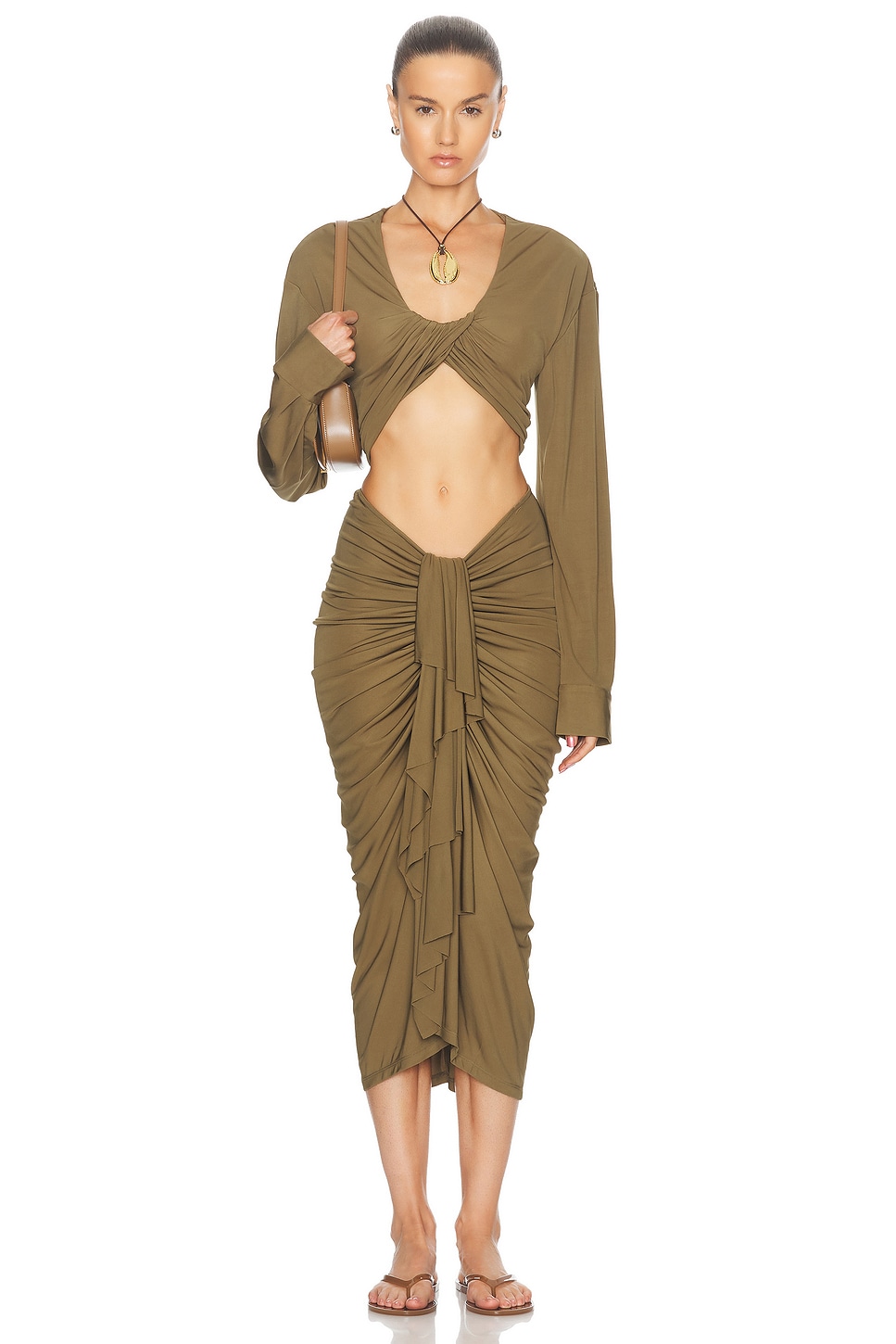 Юбка миди с драпировкой Vivenda Christopher Esber, цвет Olive 35 372₽