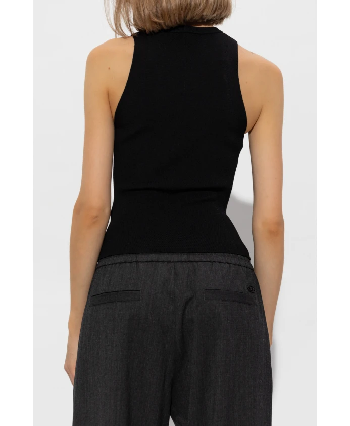 M-CADDIX-TOP — это воплощение современной элегантности, воплощенное в эксклюзивной коллекции бренда DIESEL. Топ из рубчатой ткани, в которой гармонично сочетаются вискоза и полиэстер, красиво подчеркивает силуэт благодаря облегающему крою. Классический черный цвет и круглый вырез без рукавов подчеркивают минималистский стиль и роскошный характер. Центральным элементом топа является металлический логотип в форме овала с буквой