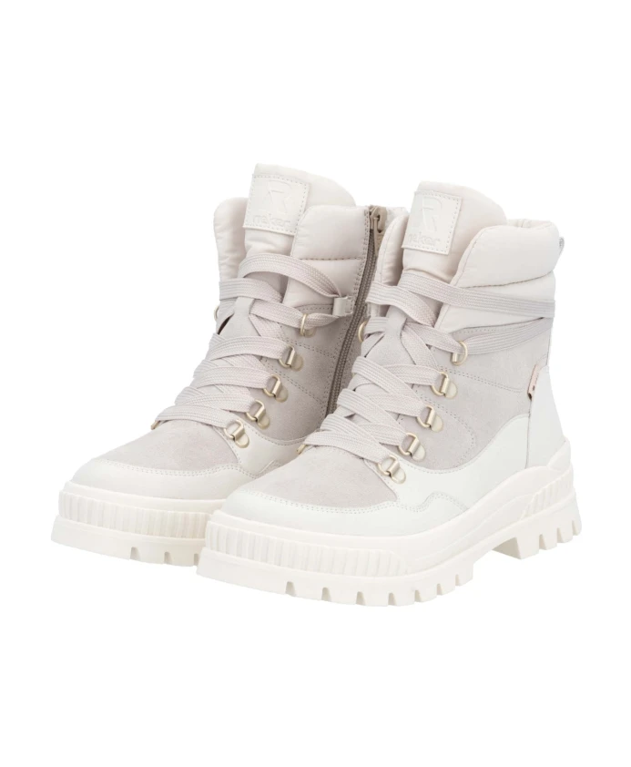 Подчеркните свой стиль с помощью этих белых ботильонов на шнуровке Rieker. Эти ботинки с кожаным верхом, шерстяной подкладкой и резиновой подошвой идеально подходят для взрослых женщин.
