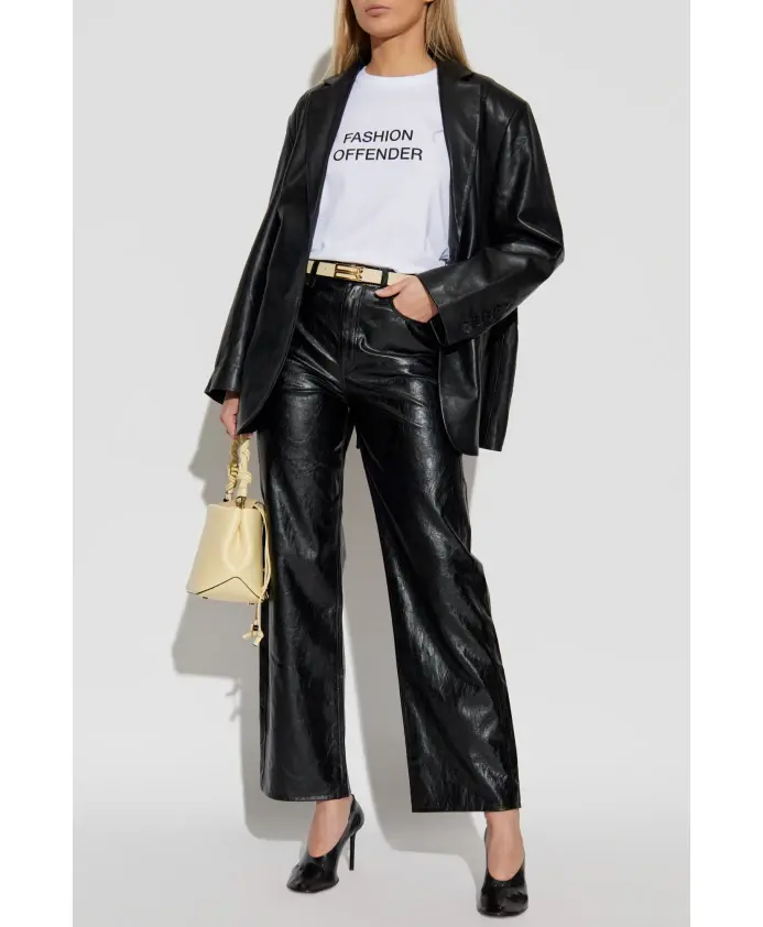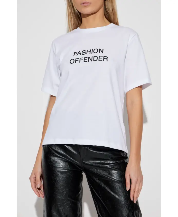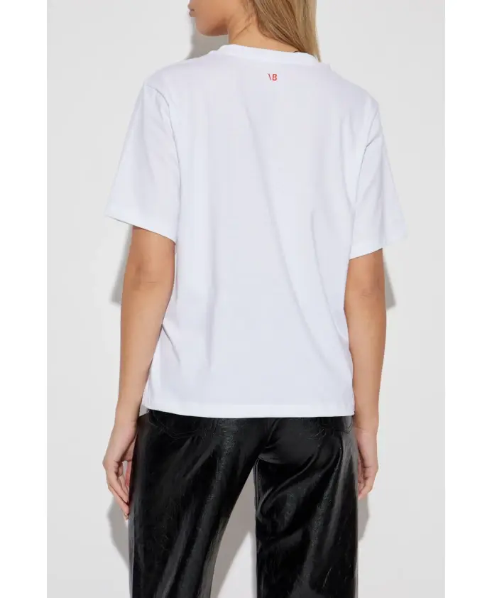 Представляем ФУТБОЛКУ С ПРИНТОМ от известного дизайнера ВИКТОРИИ БЕКХЕМ, которая сочетает в себе минималистский стиль с оттенком авангардной элегантности. Эта белая футболка, изготовленная из ХЛОПКА высочайшего качества, идеально вписывается в канон вечной женской моды. Простой крой гармонично подчеркивает женственный силуэт, а гладкая ткань обеспечивает комфорт. Спереди имеется черный принт с надписью.