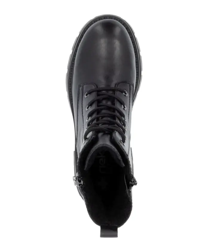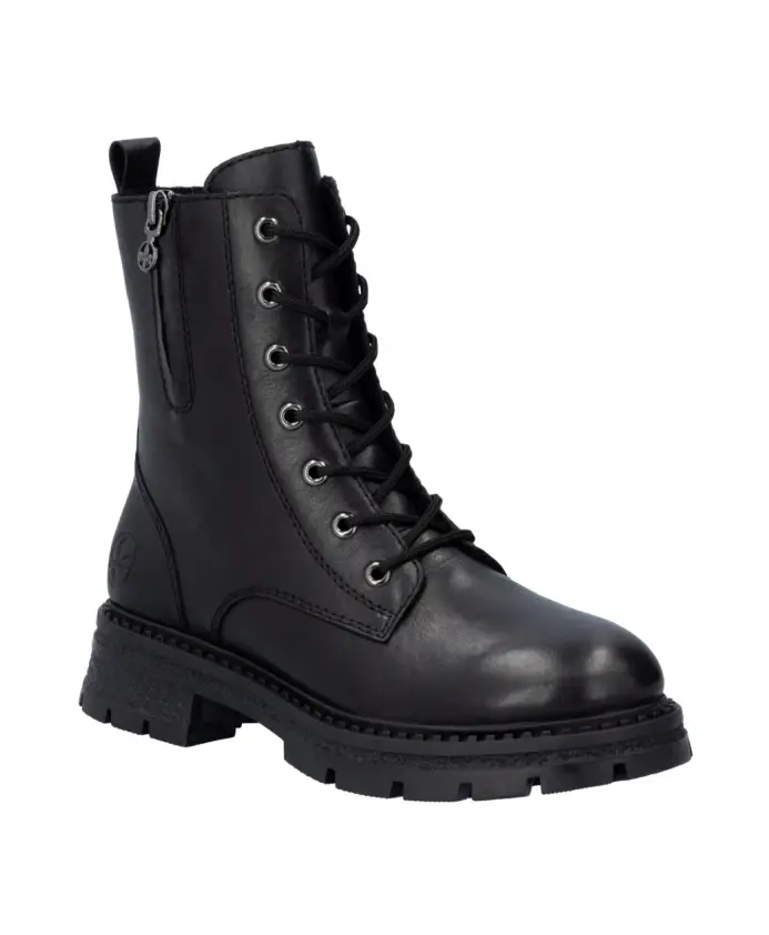 Подчеркните свой стиль с помощью этих женских ботильонов Rieker на шнуровке классического черного цвета. Верх из кожи, шерстяная подкладка и резиновая подошва. Код продукта: Z9804-00.