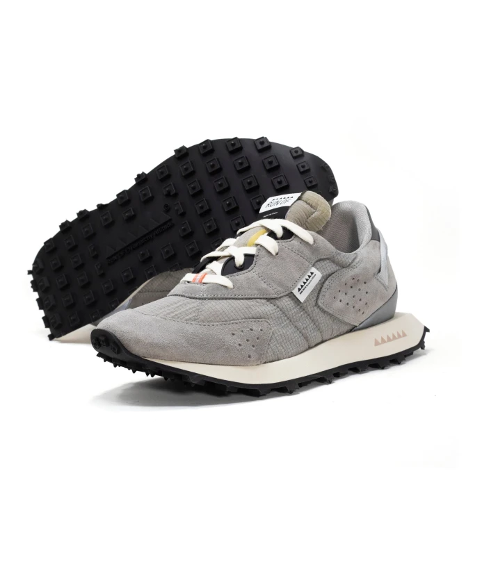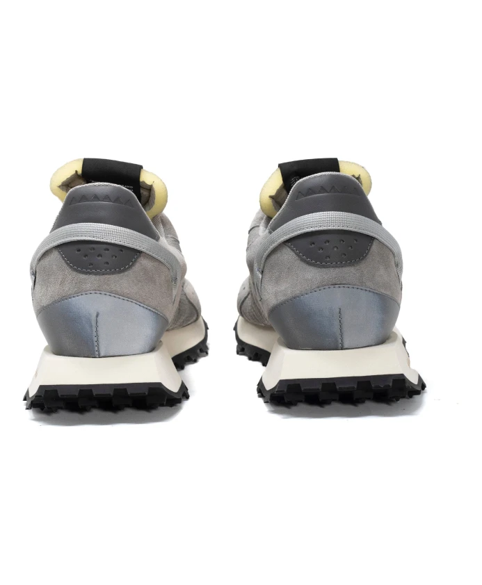 Кроссовки СЕРОГО цвета из спилка и СЕРОЙ синтетической ткани На белой/черной подошве Производство Италия