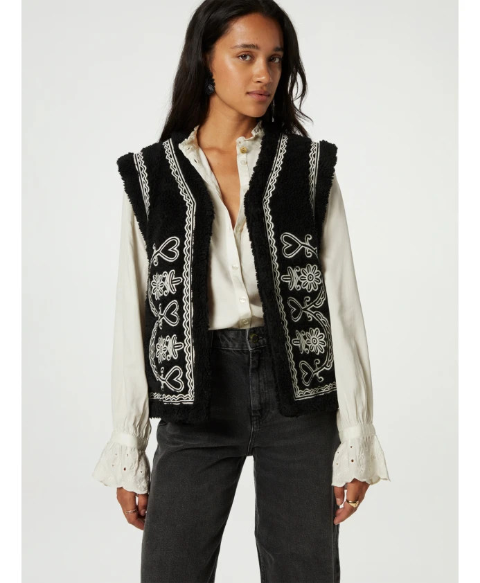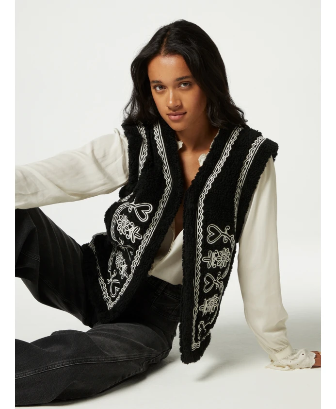 Жилет на подкладке из мягкой овечьей кожи (полиэстера). Жилет Tobi украшен красивой цветочной вышивкой.