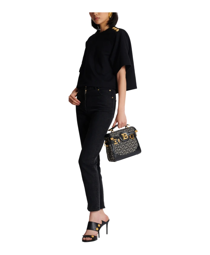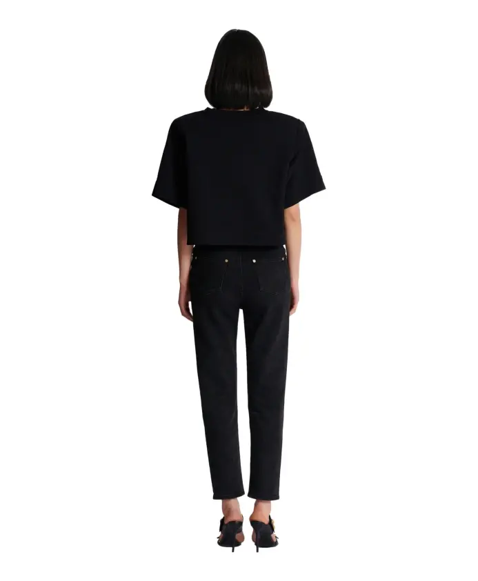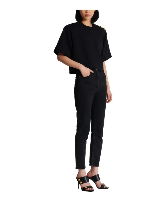 Укороченная толстовка с пуговицамиСвободный кройСтруктурированные плечиКруглый вырез с ребристым краем3 декоративные двойные пуговицы-левы из золотистого металла на плечеКороткие рукаваРост модели 178 см, размер MОсновной материал: 100% хлопокСделано в ИталииАртикул: DF1EE101JB53100% хлопкового волокна, используемого для эта одежда сертифицирована и получена из органического сельского хозяйства.