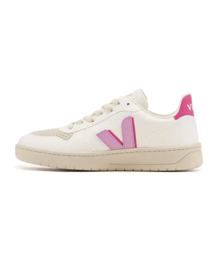 Женские кроссовки Veja V-10 Белый/Орхидея/Ультрафиолетовый. Кроссовки Veja Campo Chromefree — идеальный выбор стильной и удобной обуви, изготовленной с использованием процесса, который ограничивает использование химикатов и снижает потребление воды и энергии.