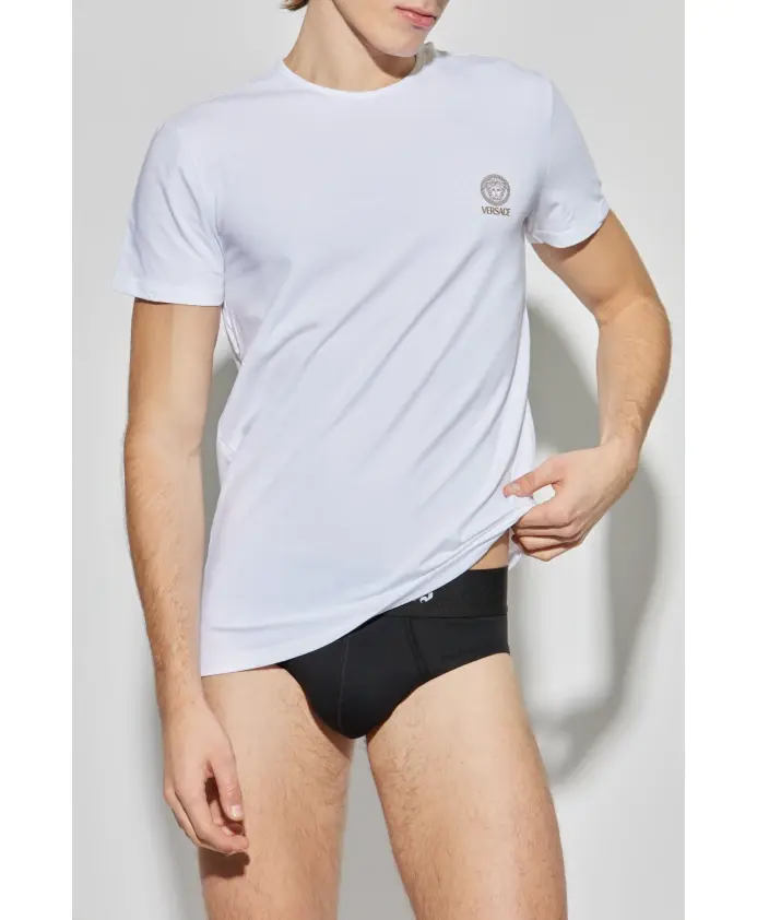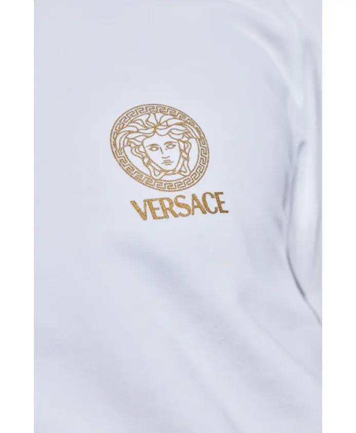 Откройте для себя утонченную элегантность белой ФУТБОЛКИ С ЛОГОТИПОМ из эксклюзивной коллекции Versace. Этот уникальный продукт гармонично сочетает в себе вневременной стиль и современный характер, что делает его идеальным выбором для тех, кто ценит роскошную моду. На передней части рубашки имеется четкий ЛОГОТИП VERSACE с величественным изображением Медузы и