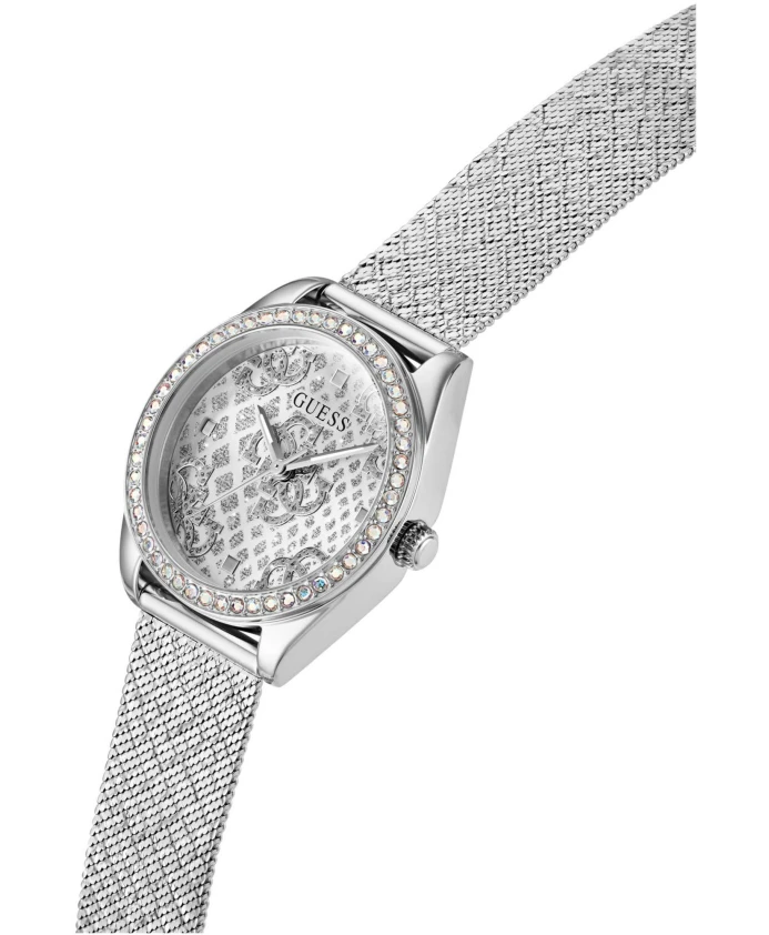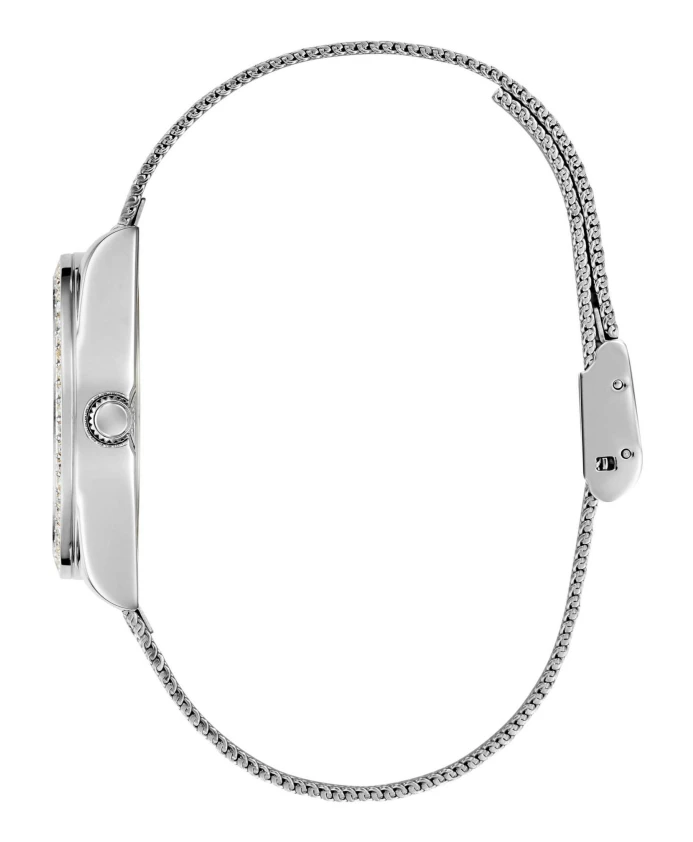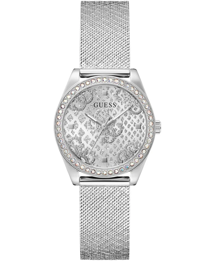Поднимите свой стиль с часами Guess Majesty. Эти элегантные часы имеют корпус и браслет из нержавеющей стали серебристого цвета, дополненные серебристым циферблатом с хрустальными акцентами. Благодаря кварцевому механизму и водонепроницаемости до 5 бар эти часы идеально подходят для любого случая. Диаметр корпуса 40 мм придаст вашему образу изысканность.