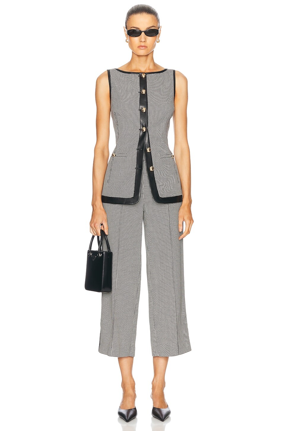 Укороченные брюки Miki с пуговицами SIMKHAI, цвет Black White Check 27 009₽