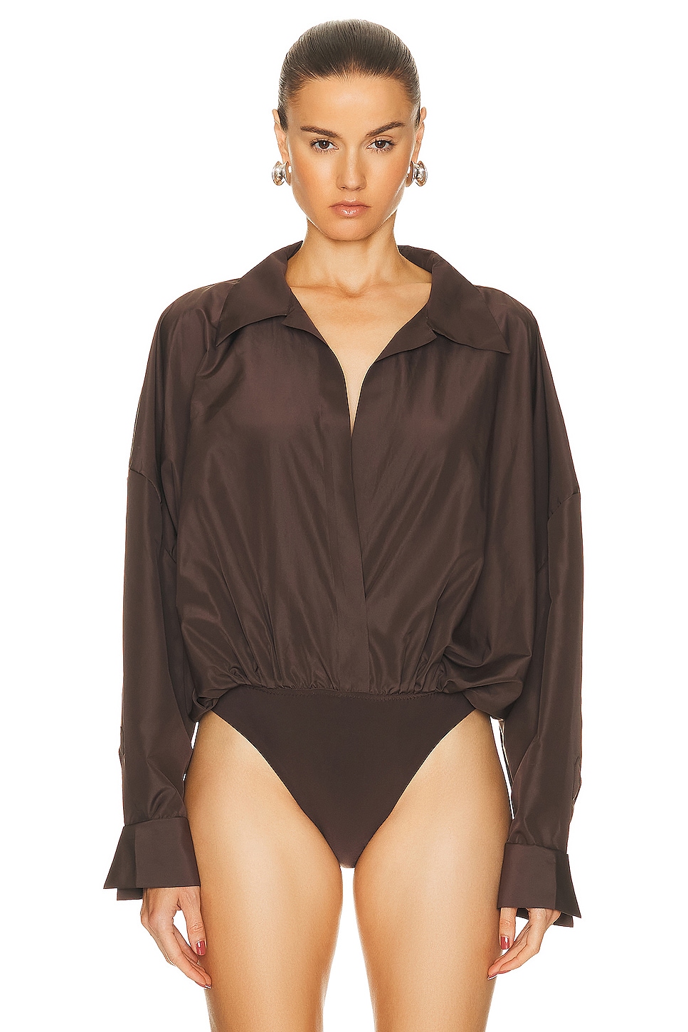 Боди-рубашка супер-оверсайз-бойфренда Norma Kamali, цвет Chocolate