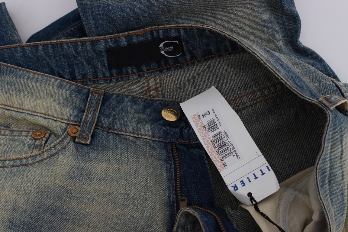 Ощутите сочетание роскоши и долговечности, представляя эксклюзивные джинсы Cavalli — яркий образ для поклонников моды. Эти джинсы предлагают идеальное сочетание стиля и комфорта благодаря своей облегающей посадке и изящному дизайну bootcut, сшитые так, чтобы подчеркнуть ваш силуэт, с пристальным вниманием к деталям и качеству.